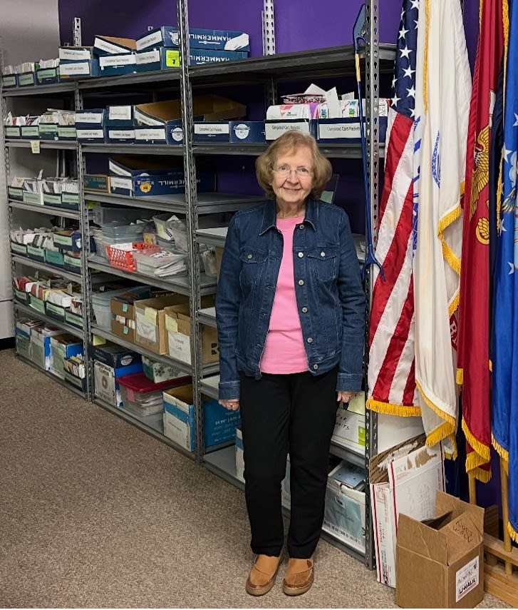 Whenever you visit the Military Missions office, we hope you get to meet Jo Neuzel! When Jo began volunteering in 2010, shortly after her husband Larry began his MM volunteer work, she discovered a need to organize the cards and letters which we include in each care package. In fact, Jo’s desire is for each service member to receive a touch of home with the 8-10 cards enclosed in each package. “I’m constantly amazed at the outpouring of support that service members receive in these cards,” she said. Indeed, we receive numerous handwritten notes and handmade cards almost daily.